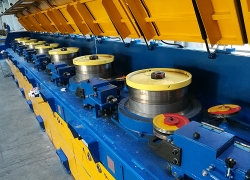 特點:Φ2mm鋼絲生產(chǎn)速度:20米/秒,產(chǎn)量:1700Kg/h,Φ1mm鋼絲生產(chǎn)速度:30米/秒,產(chǎn)量:650Kg/h
